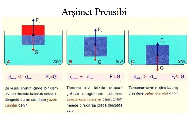 Arşimet prensibi, bir cismin suya batırıldığında, cismin üzerine etki eden kaldırma kuvvetinin, cismin yerine aldığı suyun ağırlığına eşit olduğunu belirtir. Yani, bir gemi suya batırıldığında, geminin yerine aldığı suyun ağırlığı kadar bir kaldırma kuvveti oluşur.
